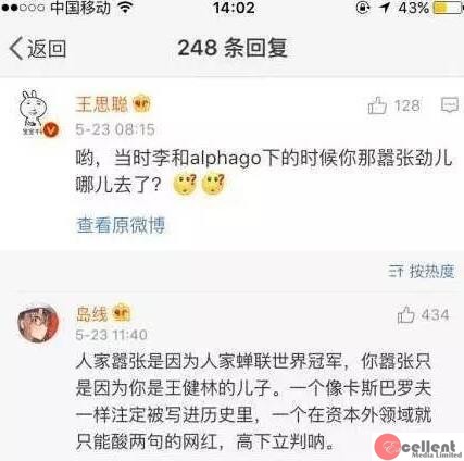 當初和阿法狗比賽的李世石以4:1的總比分輸了的時候,柯潔在微博上寫道“就算阿法狗戰勝了李世石,但它贏不了我。”就在吃瓜群眾還在爭論這一波人機大戰到底誰的功力更深的時候,妳猜怎麽著,連一向懟天懟地愛意氣用事的思聰老公在一開始站隊時就機智地選擇了——那只狗。