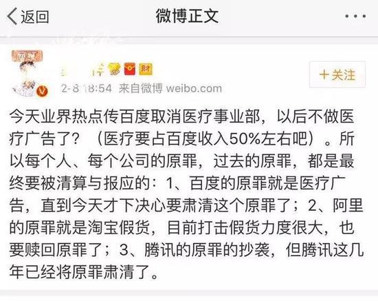 可是仔細一想,百度裁撤一個事業部門,為什麼會引起那麼多的人關注?即使不少報導已經澄清,此醫療事業部和醫療廣告業務部門無關,還是擋不住“吃瓜群眾”罵聲連連。