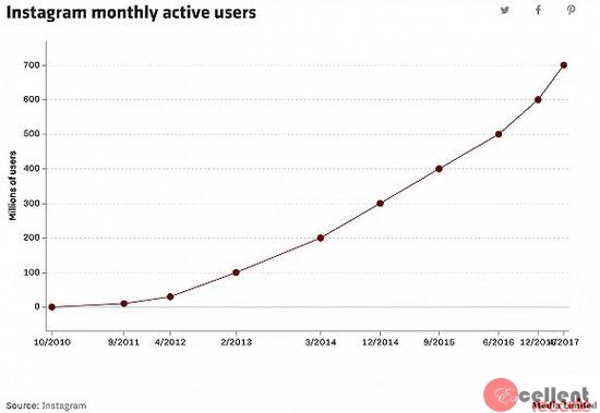 比這個數字更有價值的是,這是Instagram增加1億用戶花費最短的一次時間。Instagram上次公布6億用戶的時候是在2016年12月,即其最近增加的1億是在最近的4個月內完成的。