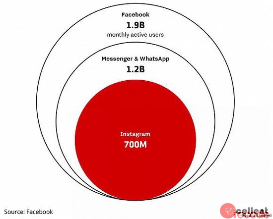 Facebook旗下平臺月活躍用戶數量對比,圖片來源:Recode