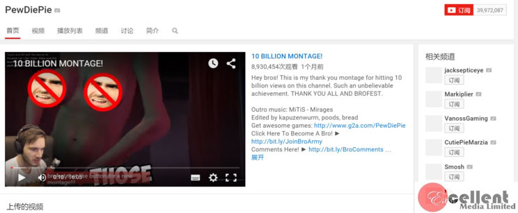 (這就是 PewDiePie 的 YouTube 首頁,其視頻風格比較搞怪,很受歡迎)